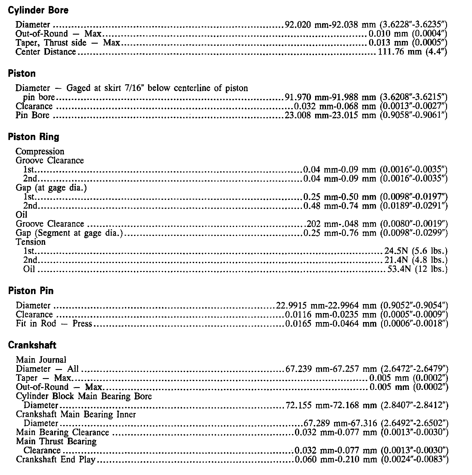Continued Engine Specifications: