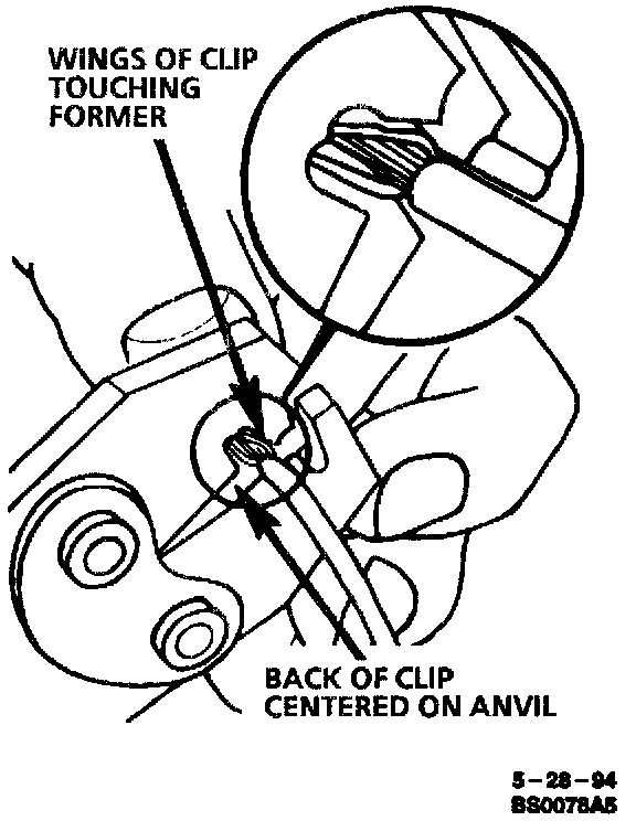 ^ Center the back of the splice clip on the proper anvil and close the crimping tool to the point where the former touches the wings of the clip.