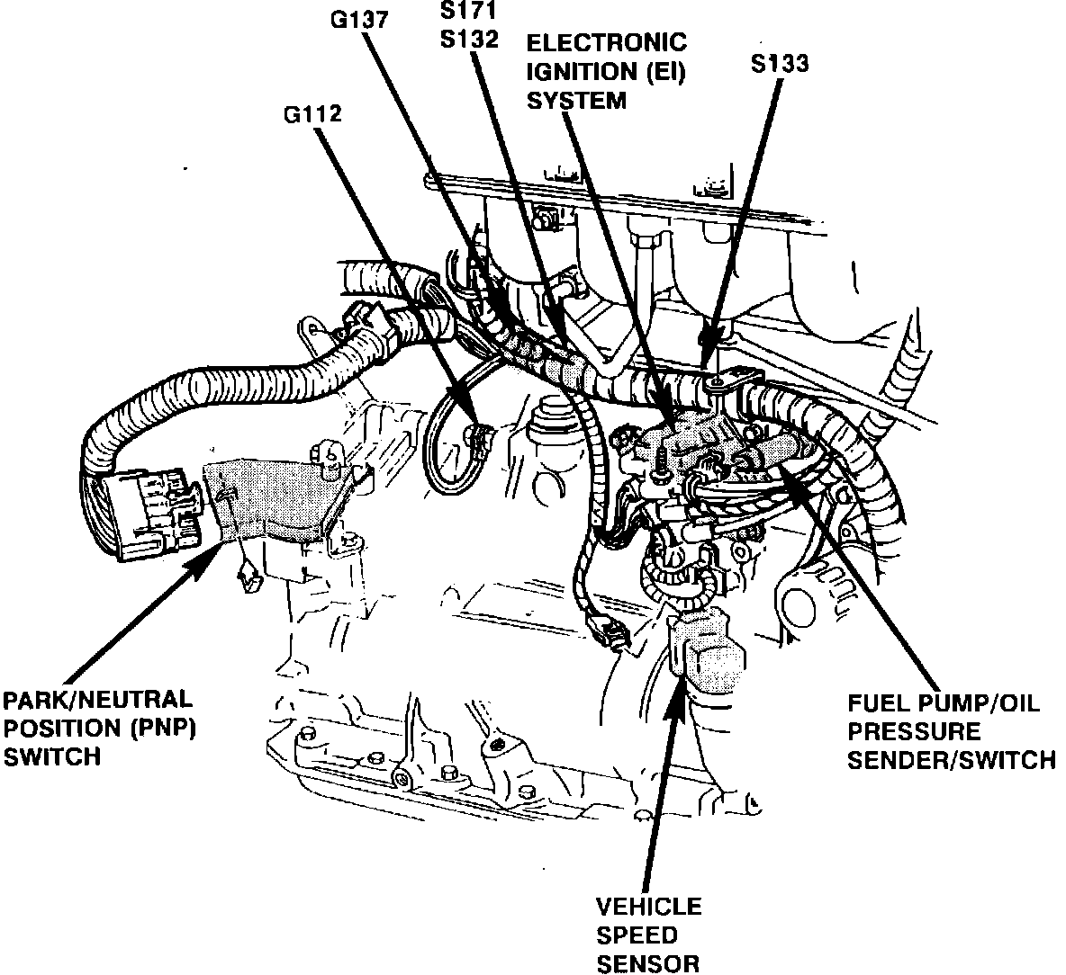 The ignition module is mounted to rear of engine, underneath ignition coils.