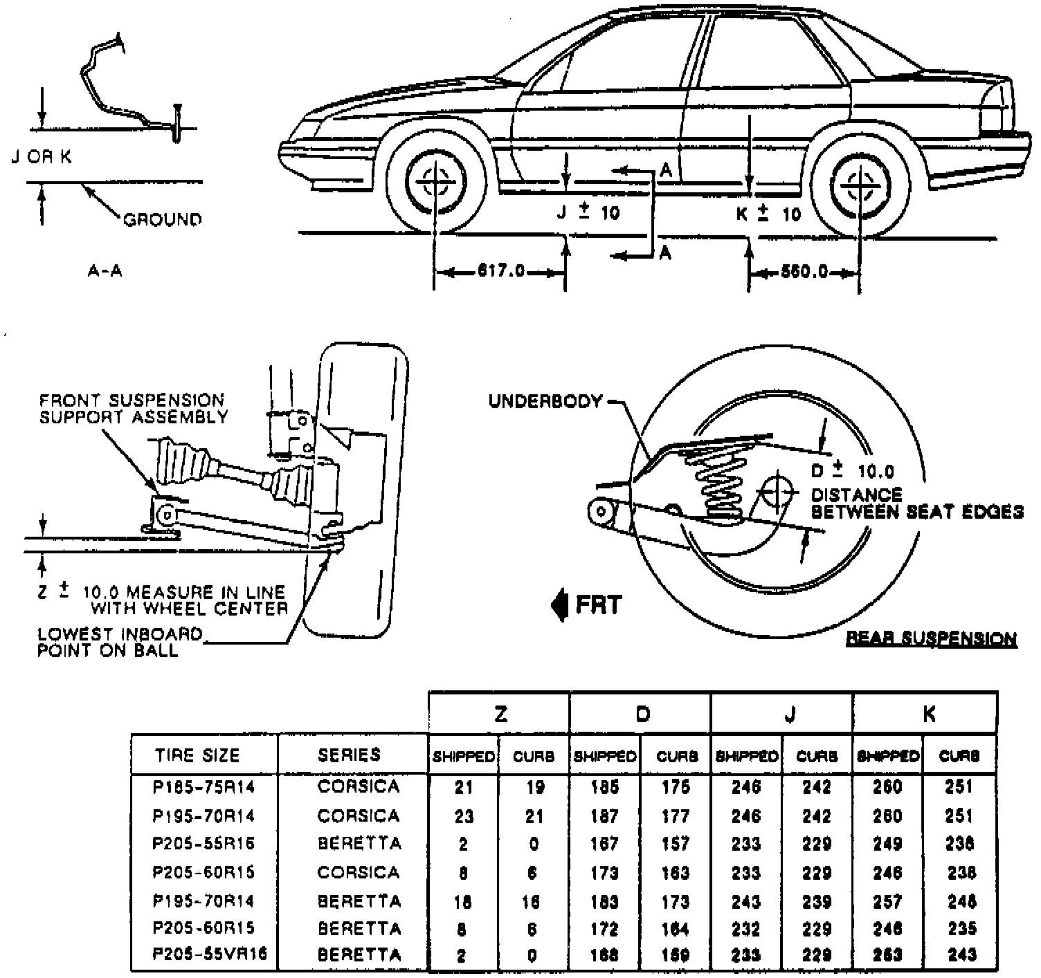 Refer to Fig. 2 for ride height specifications and measurement locations. Check ride height as follows:
