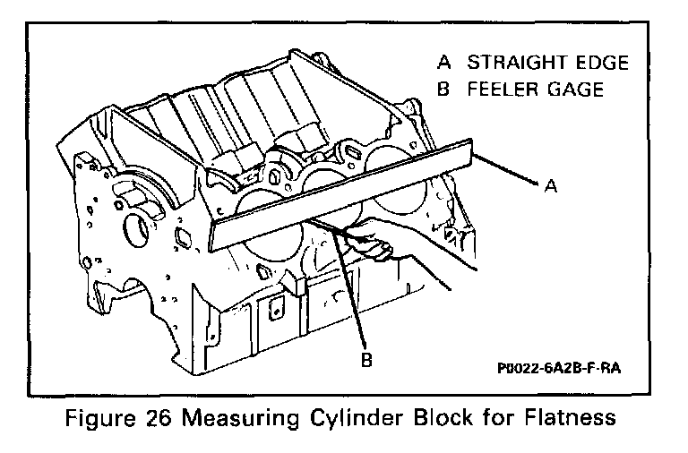 ^ Check surface for flatness. Use a straight edge and a feeler gage (Figure 26).