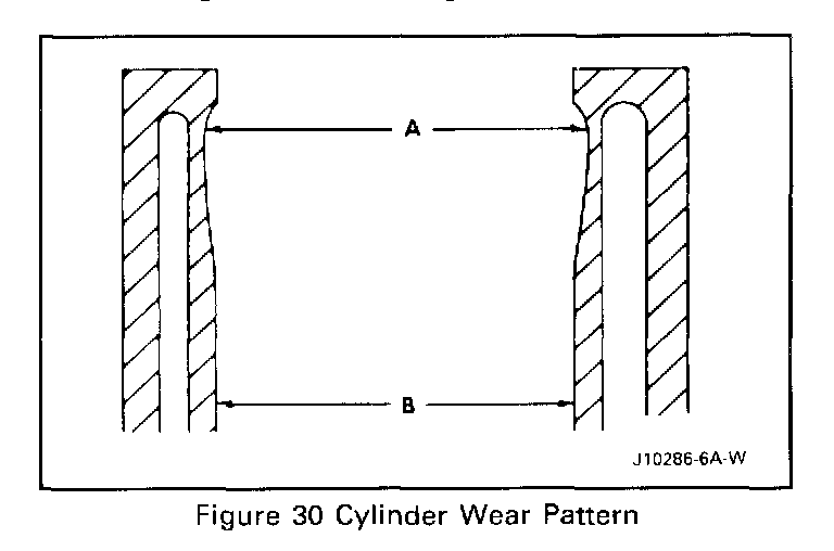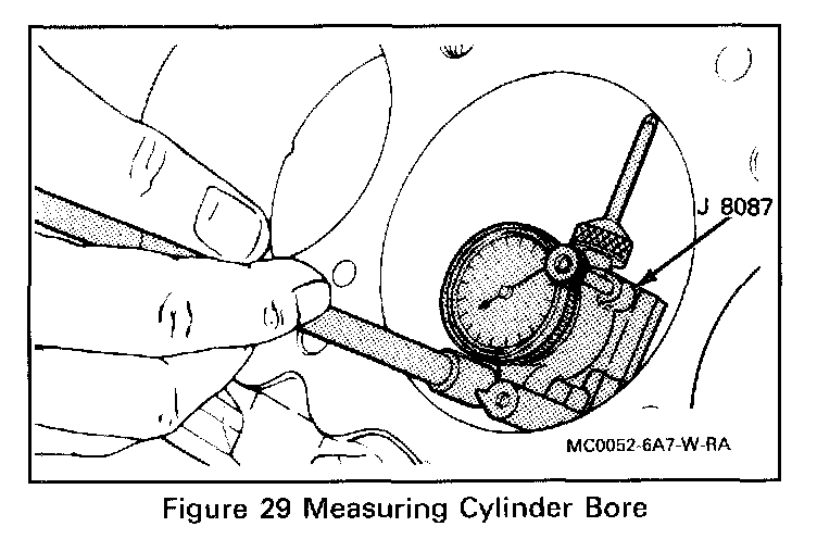 3. Cylinder bore, with J 8087 measure for wear, taper, run-out and ridging (Figures 29 and 30).