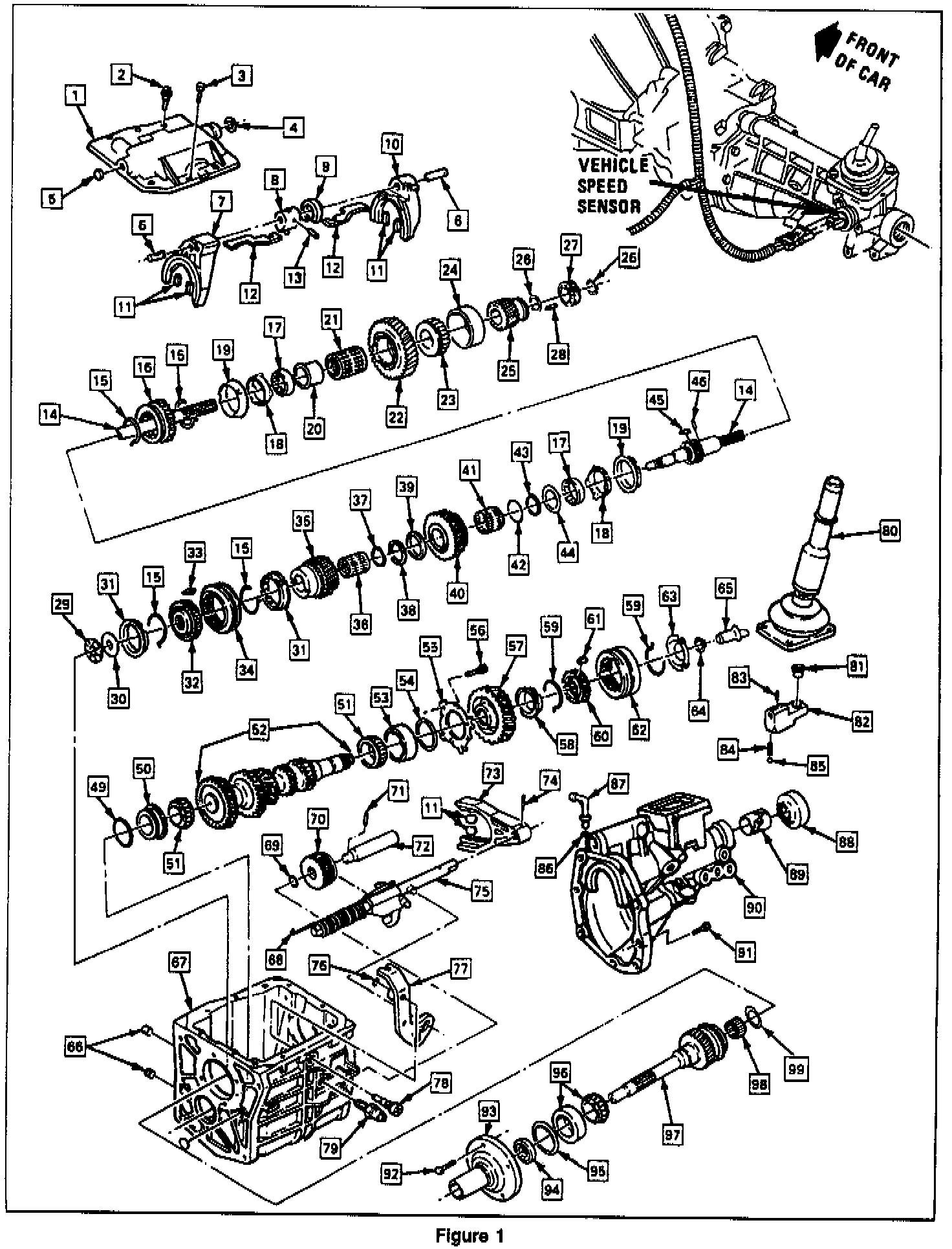 3. Vehicle speed sensor from extension housing (90).