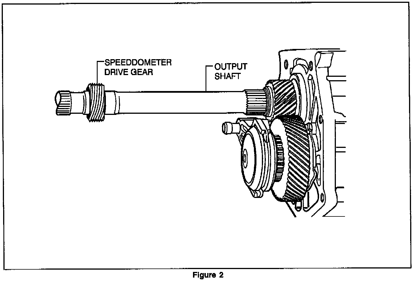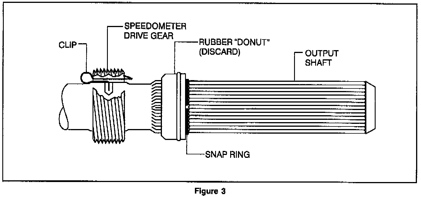 2. Revised speedometer drive gear (27) onto output shaft using modified front yoke.
