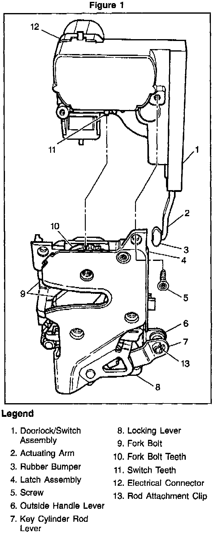 1. Remove the door latch assembly. Refer to Section 10 in the Service Manual.