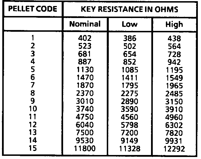Key Code and Resistance Chart
