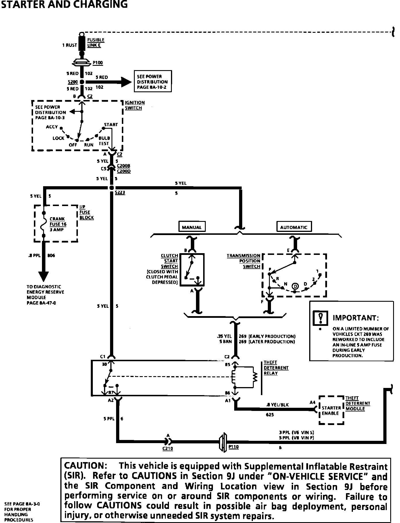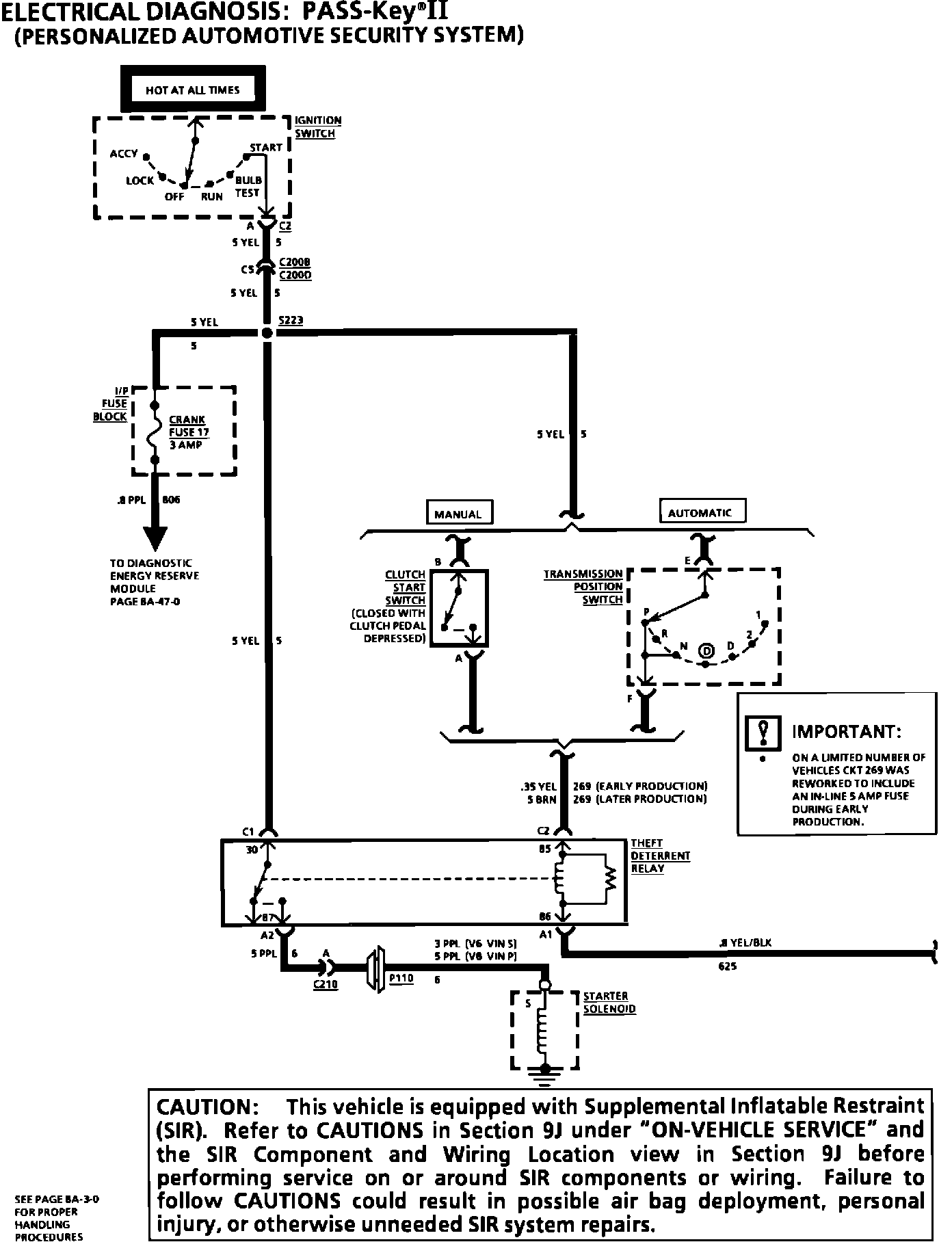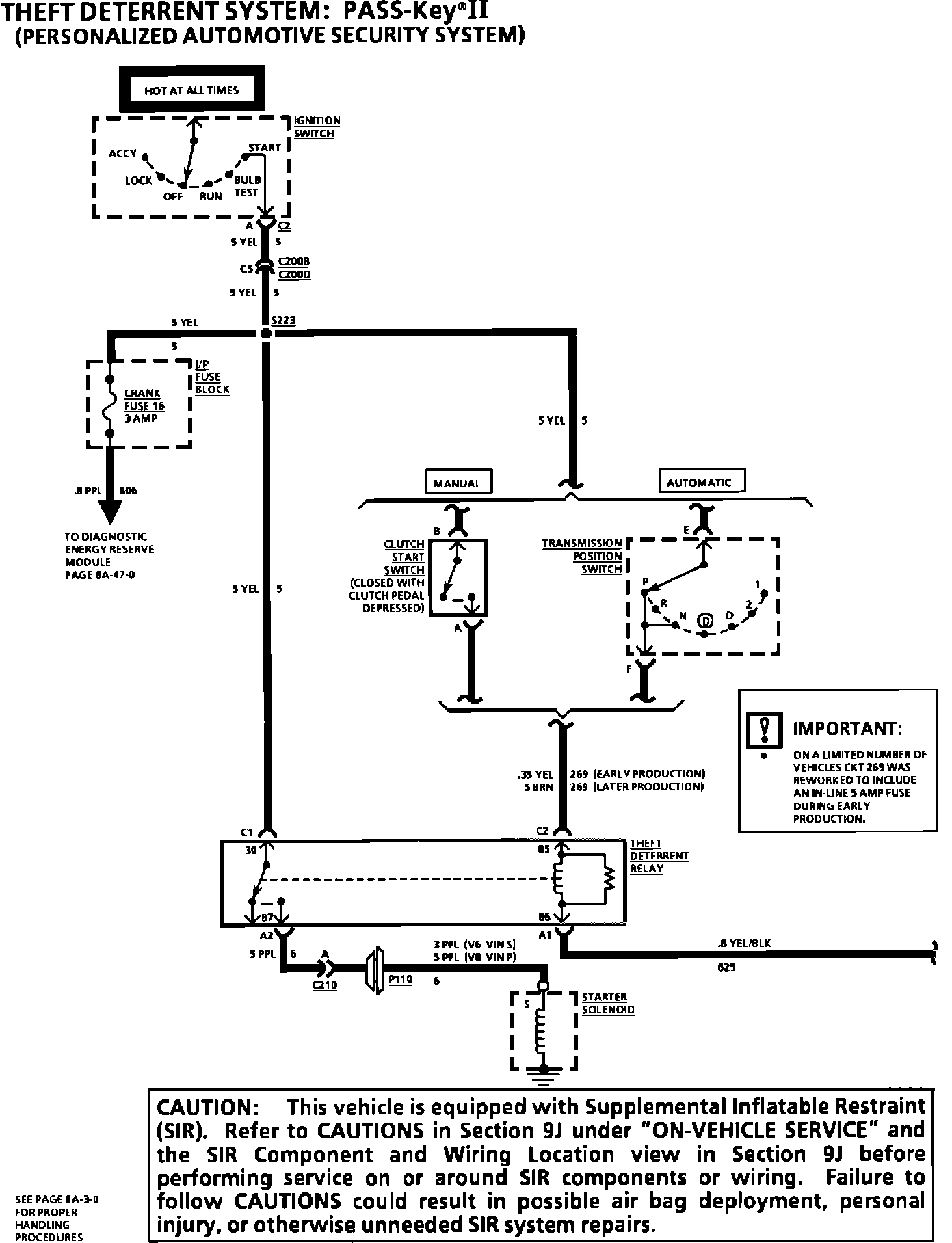 The schematic on pages 8A-30-0, 8A-133-0, and 9D-4 of the 1994 Camaro/Firebird Service Manual has been updated. The gauge size and wire color of circuit 269 has been changed and an important note has been added.