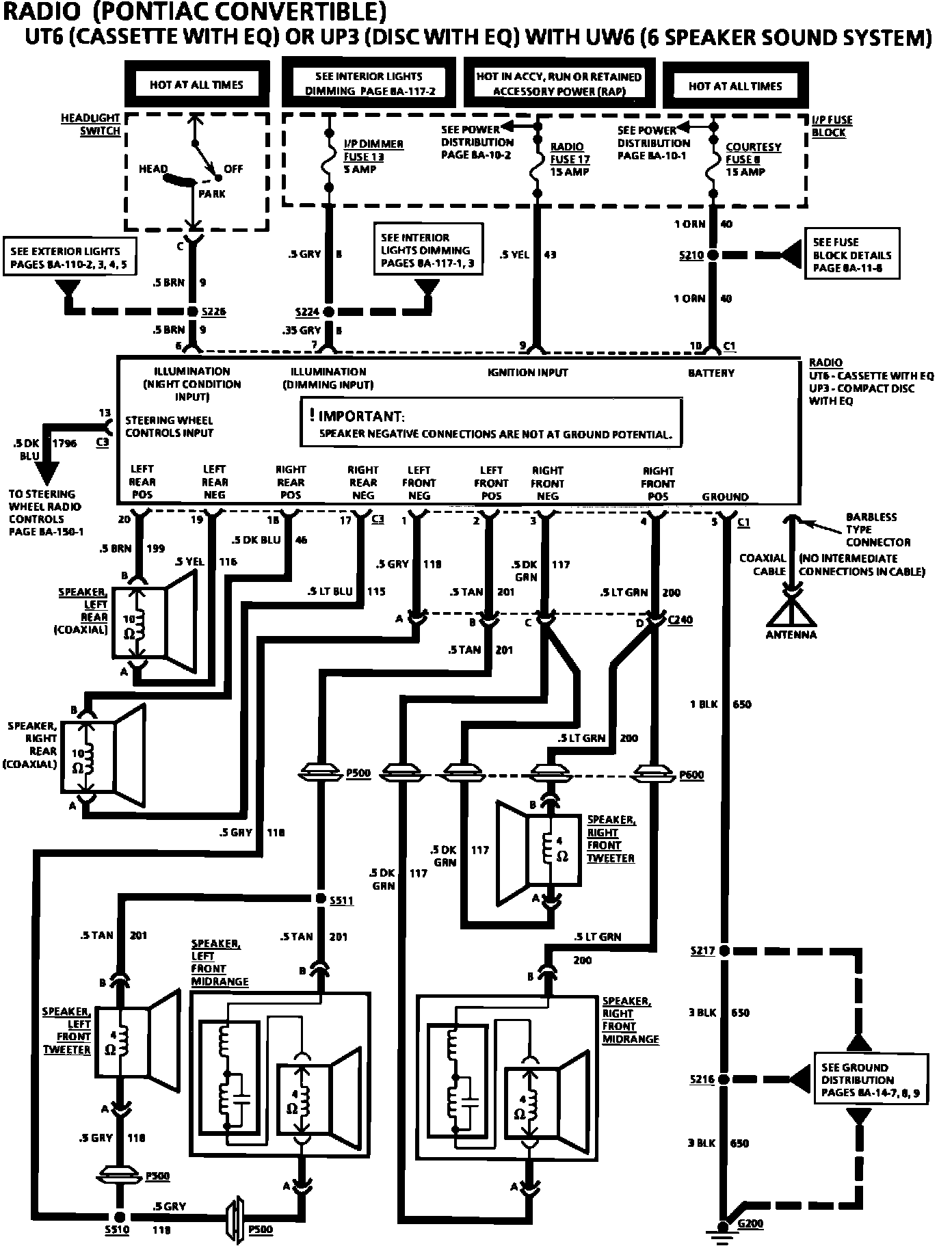 An additional page for the Radio 8A-150 Section of the 1994 Camaro/Firebird Service Manual has been added to include the Pontiac Convertible 6 speaker sound system (UW6).