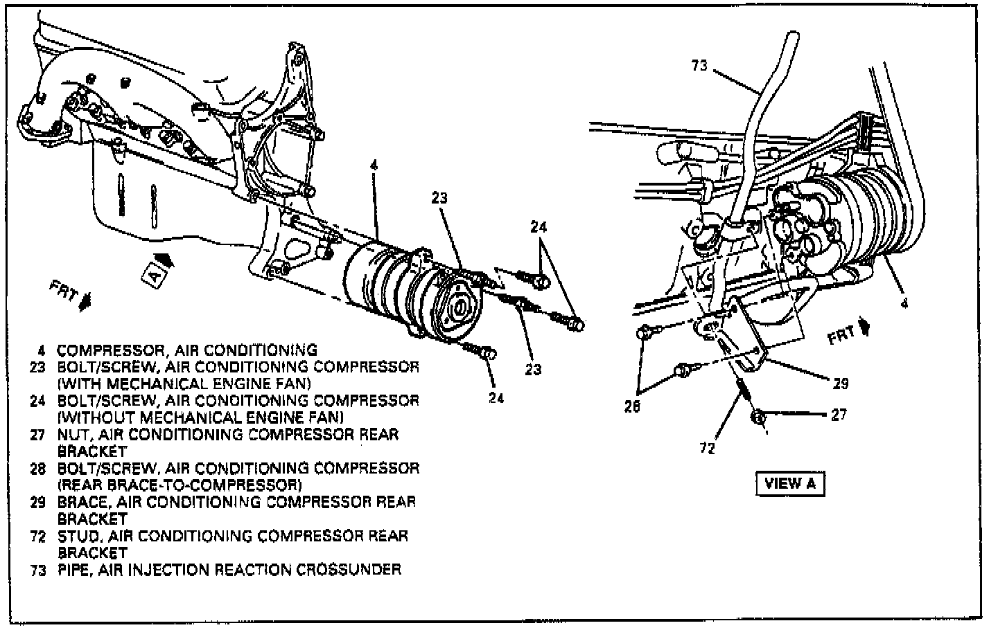 A. If compressor is being replaced, drain refrigerant oil from both defective compressor and new replacement compressor. Measure amount removed from defective compressor. if measured amount is less than 30 ml (1 fluid ounce) add 30 ml (I fluid ounce) to new replacement compressor. if more than 30 ml (1 fluid ounce) is drained from defective compressor add same amount to new compressor. Use PAG refrigerant oil GM P/N 12345923 or equivalent.