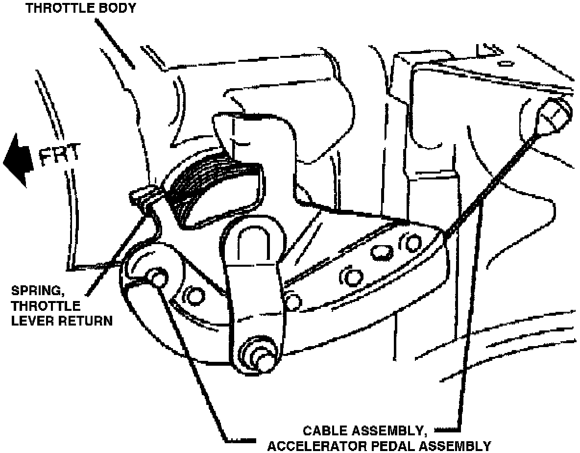 TO INSURE THAT THE THROTTLE SYSTEM OPERATES PROPERLY AFTER THE ABOVE SERVICE PROCEDURE, PERFORM AN INSPECTION OF THE FOLLOWING THROTTLE COMPONENTS: