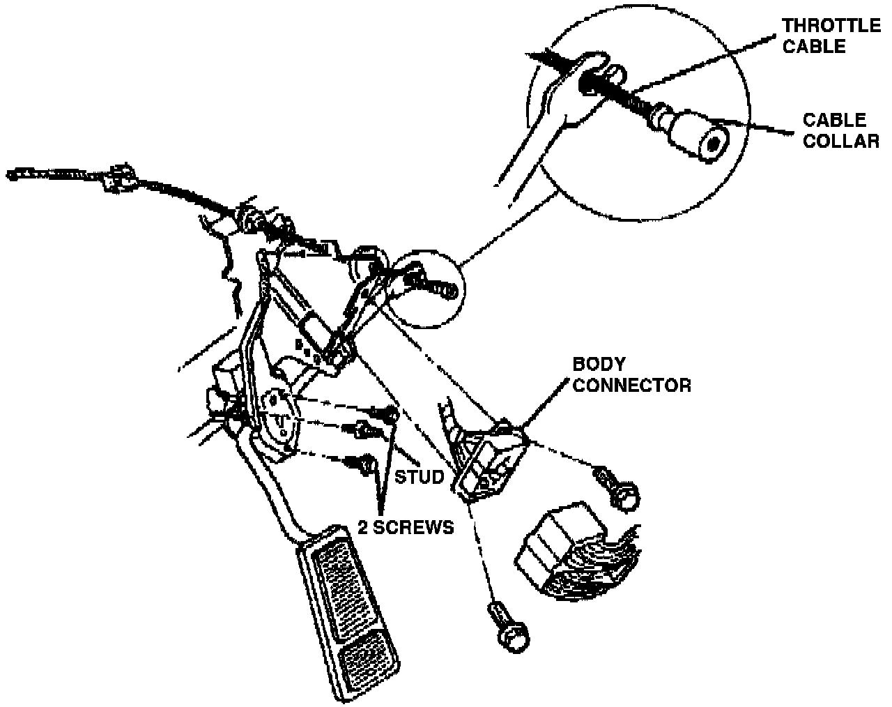 8. Connect accelerator cable to accelerator pedal assembly.