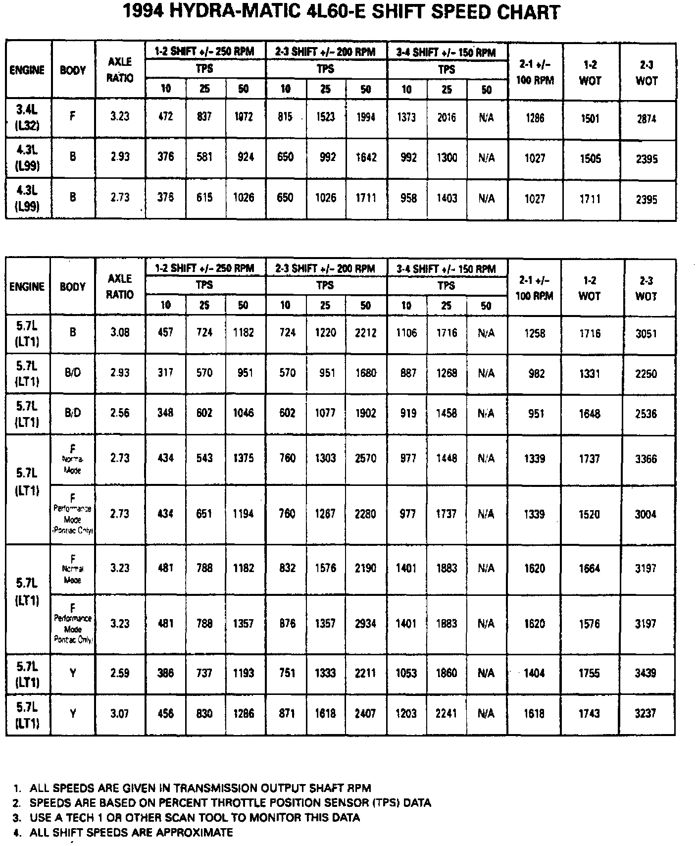 3. Accelerate using a steady increasing throttle, compare shift points to the shift point and TCC apply chart.