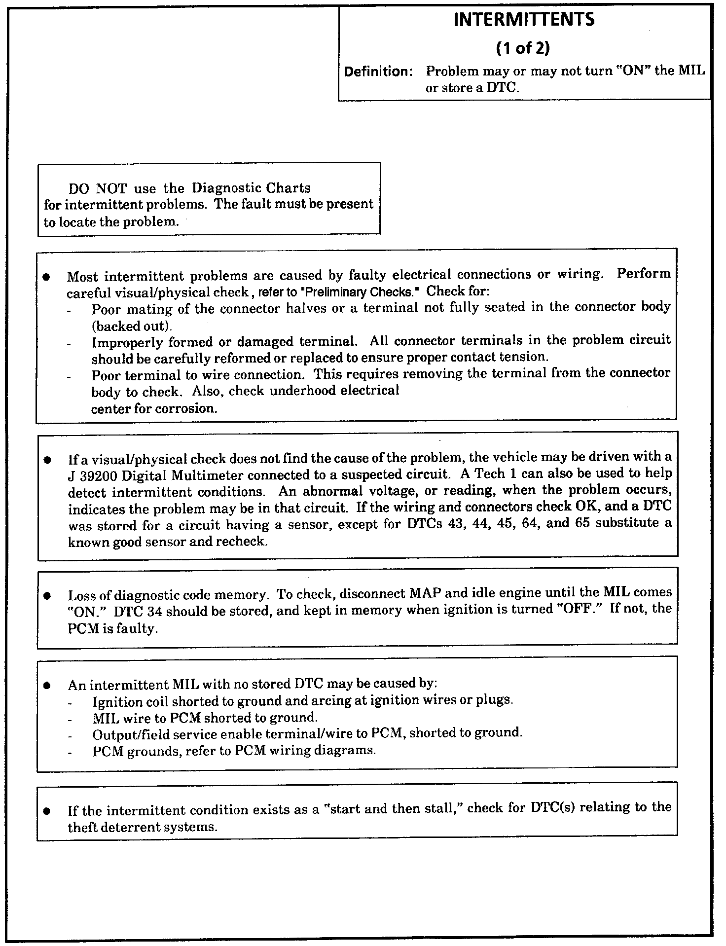 - Intermittent Malfunctions