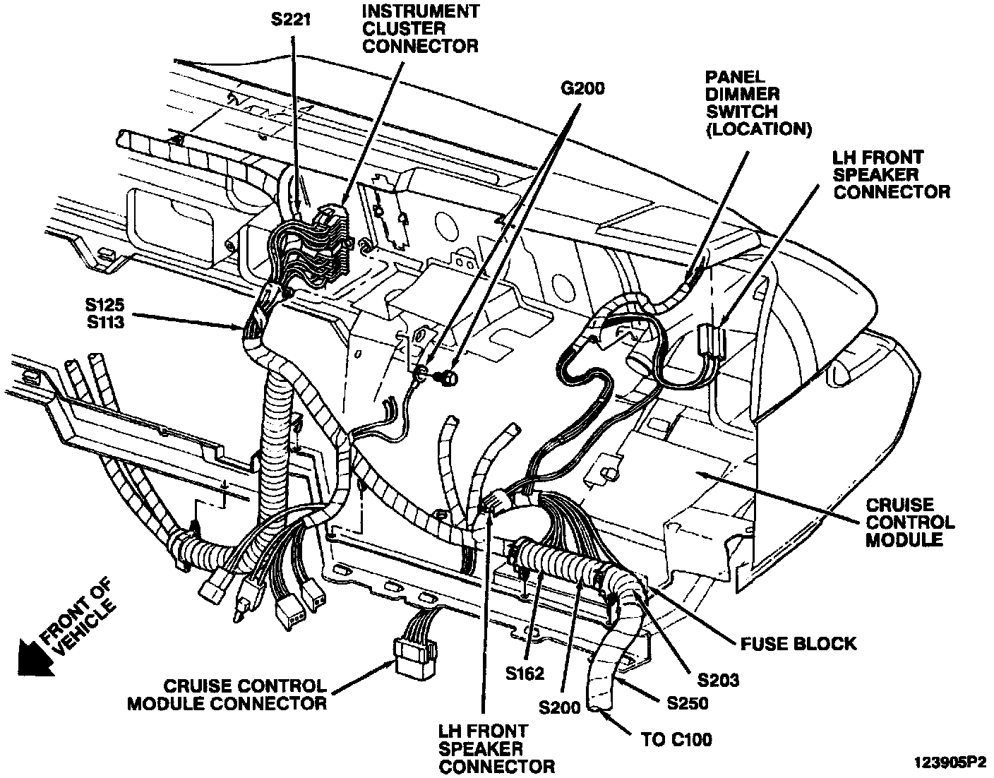 Behind LH Side Of I/P: