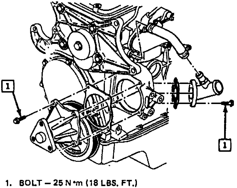 b. Install water pump with new gasket. Refer to Fig. 15 and 16 for tightening specifications.