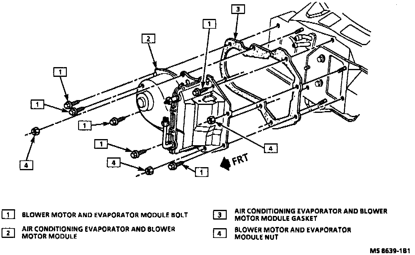 1. Blower motor and fan to evaporator module.
