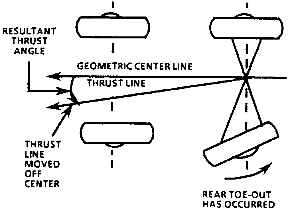 In an ideal setting, the thrust angle would be aligned with that of the vehicle center line.