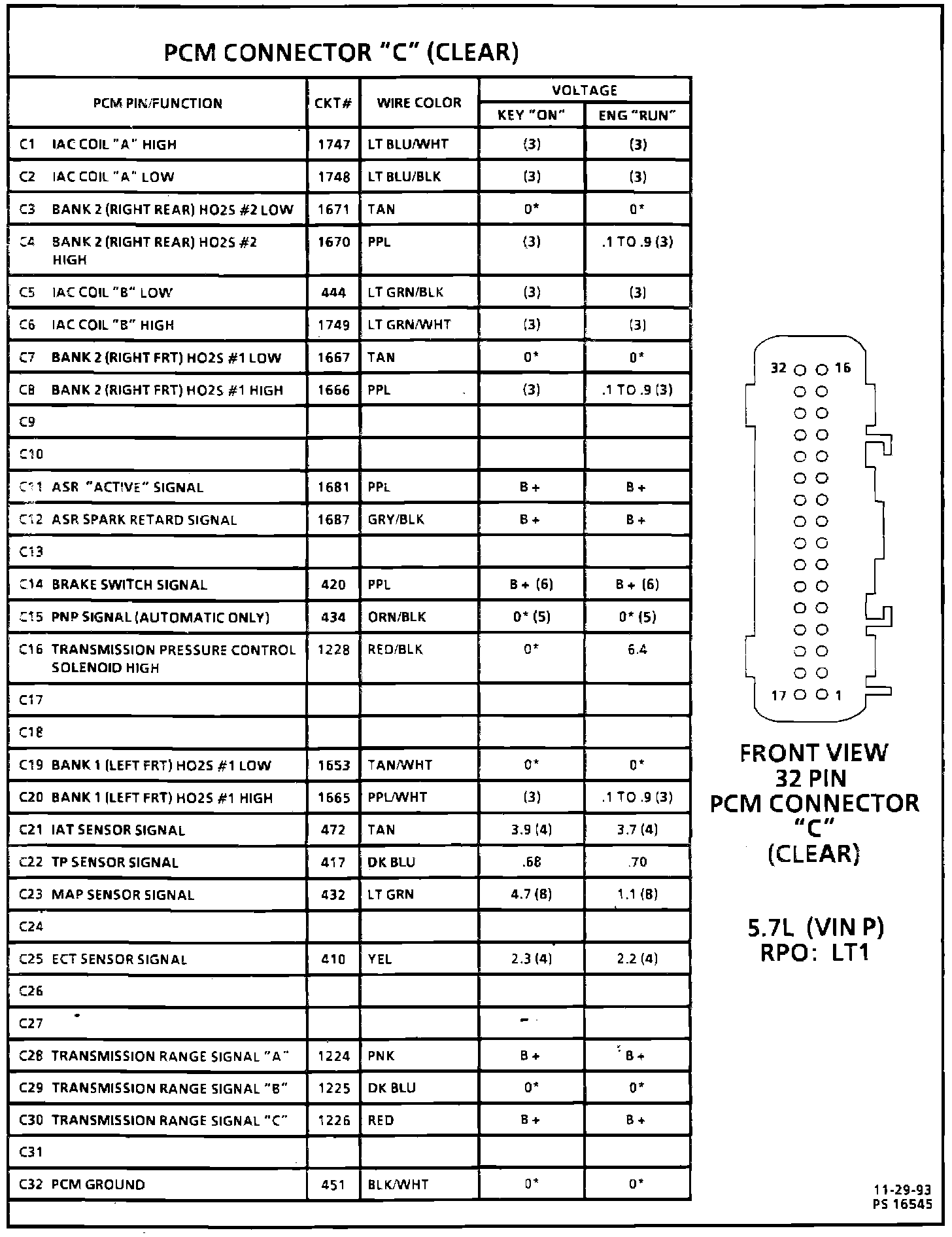 PCM Connector ID And Pin/Voltage Reference Chart (3 Of 4):
