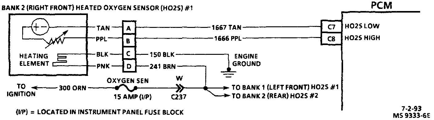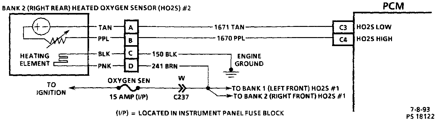 Bank 2 (Right) Front Oxygen Sensor Circuit Diagram: