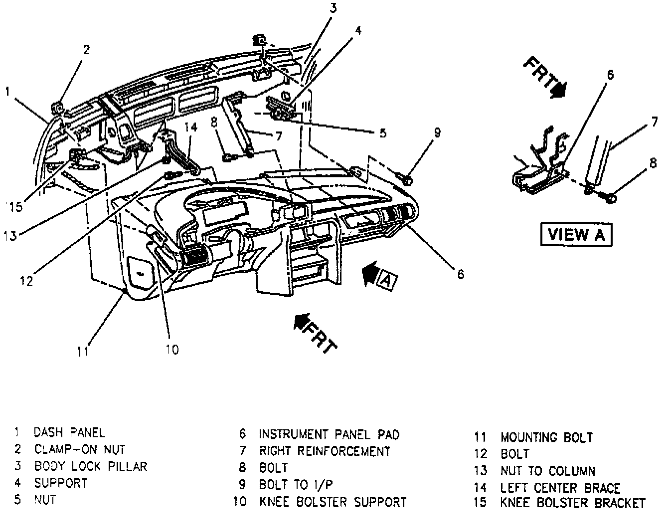 8. Remove lower left nut, left support screw, and instrument panel compartment.