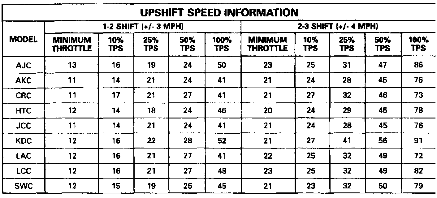 Shift Speed Charts
