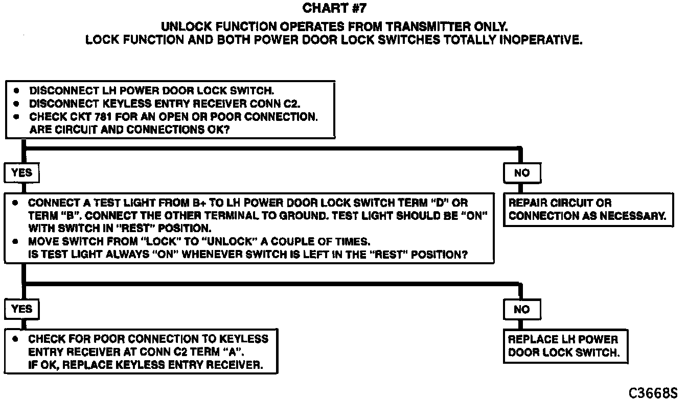 Chart #7 Unlock Function Operates From Transmitter Only: