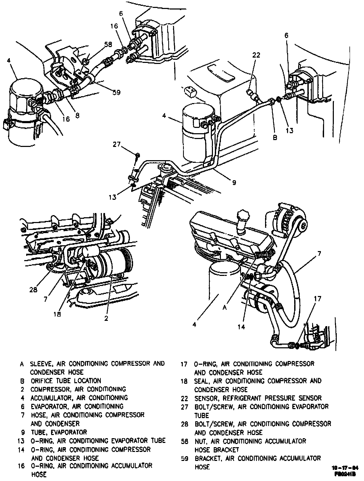 9. Seal (18) to A/C compressor and condenser hose (7).