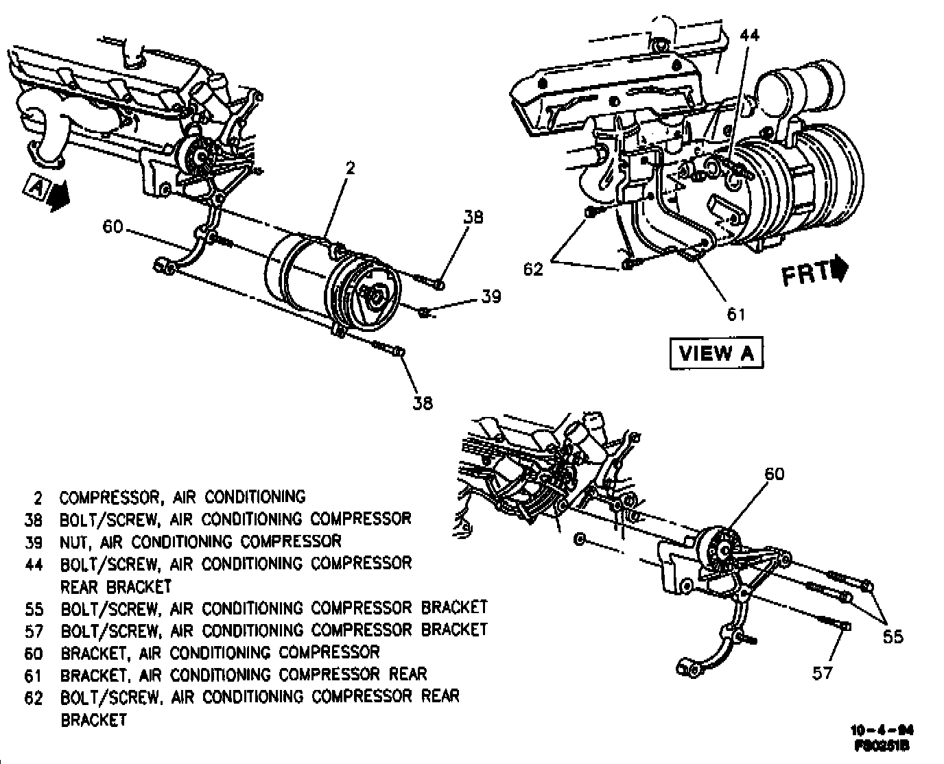 4. A/C compressor front bracket (60) to compressor (2).