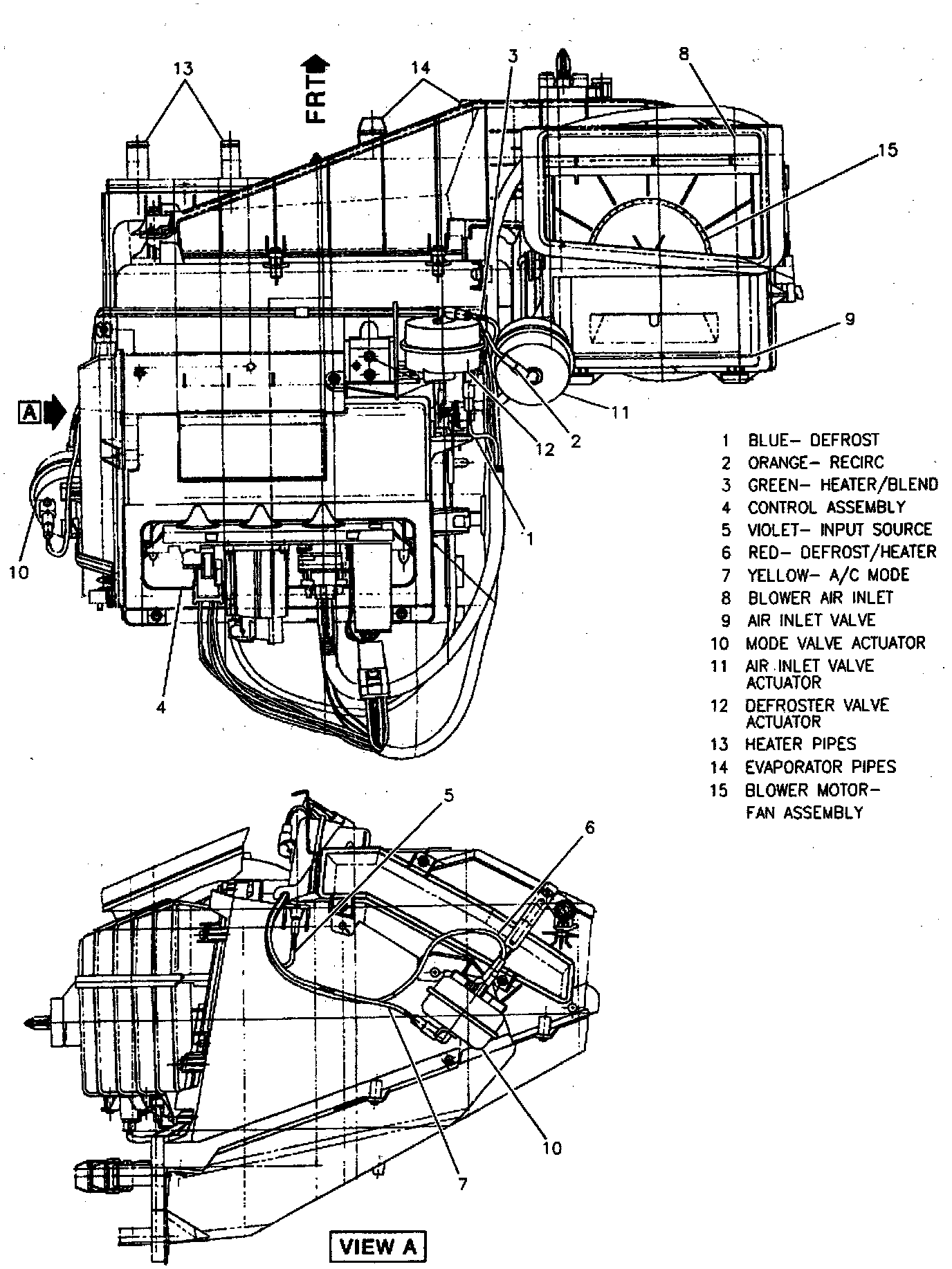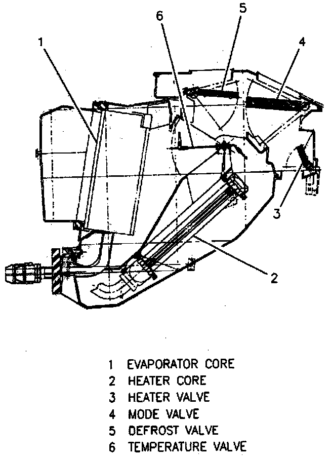 1. Heater core and heater core mounting clamps.