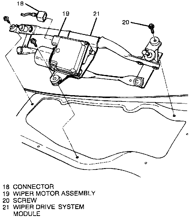 4. Three screws (20) and wiper drive system module (21) from vehicle.