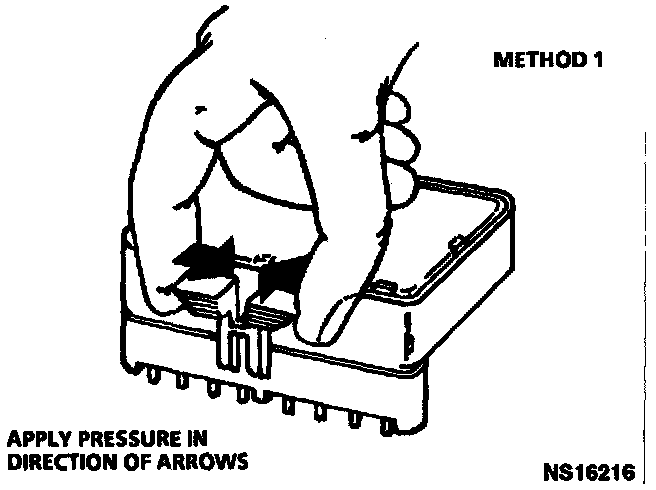 NOTE: To prevent possible Electrostatic Discharge darnage to the PCM. Do Not touch the connector pins or soldered components on the circuit board.