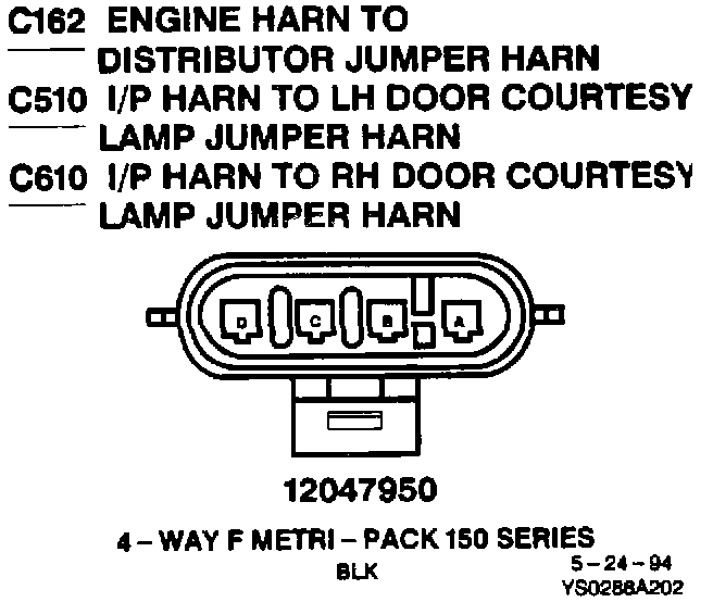 C162: ENG Harn To Distributor JMP Harn, C510: I/P Harn To LH & RH Door CTSY LMP JMP Harn And C610: