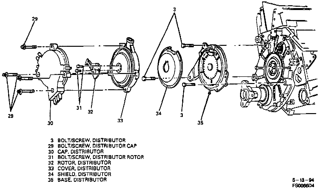 12. Spark plug (secondary) cables from distributor. Twist a boot 1/2 turn before removing and pull only on the boot to remove wire from distributor.