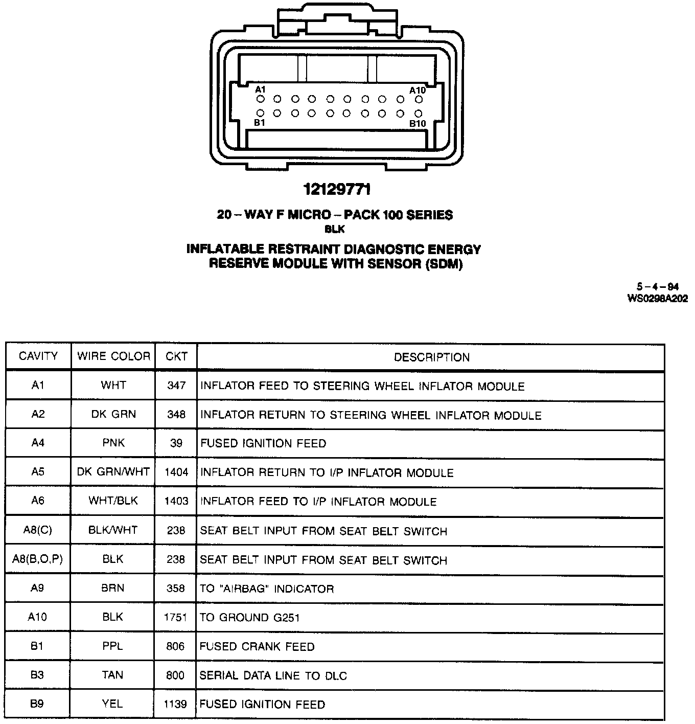Inflatable Restraint Diagnostic Energy Reserve Module With Sensor (SDM):