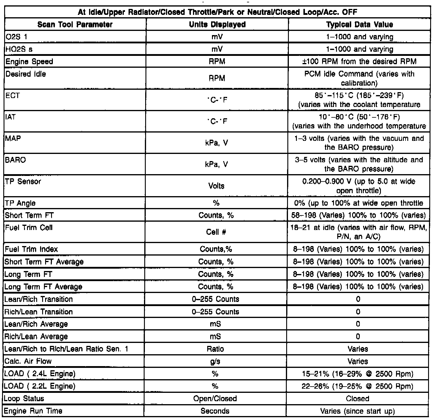 Scan Tool Data List
