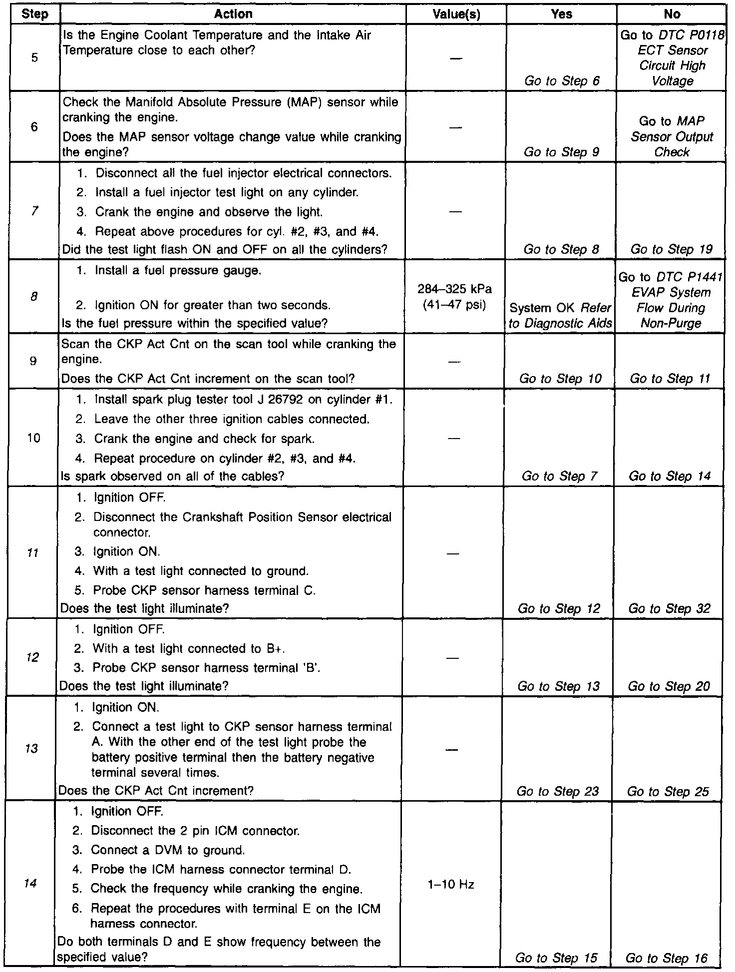 Number(s) below refer to the step number(s) on the Diagnostic Table.