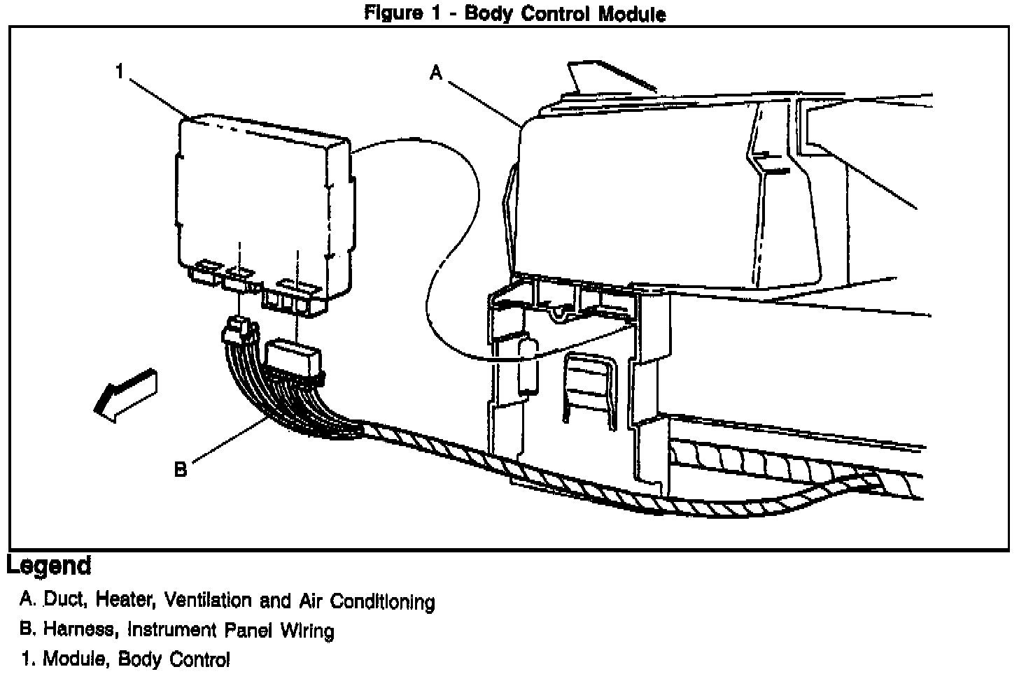 ^ If BCM is being replaced (as opposed to being removed for access to other components), refer to "BCM Replacement" after new BCM is installed in vehicle. This will enable the PASS-Key II� system portion of the BCM to properly code the new BCM to the present ignition key being used.