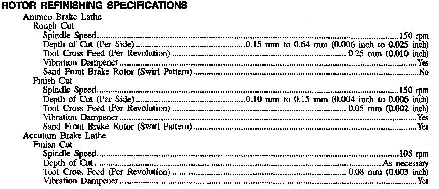Rotor Refinishing Specifications