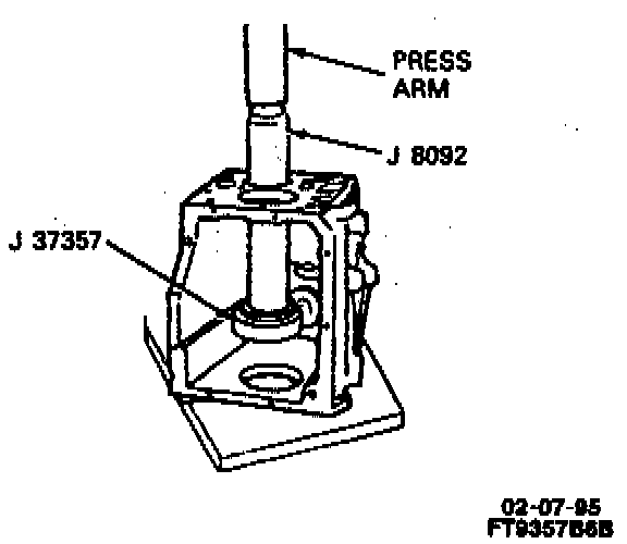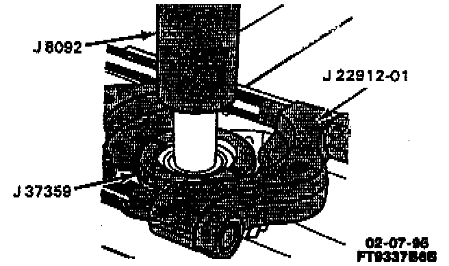 ^ Tools Required:- J 37358-1, -2 Bearing Race Receiver and Case Support