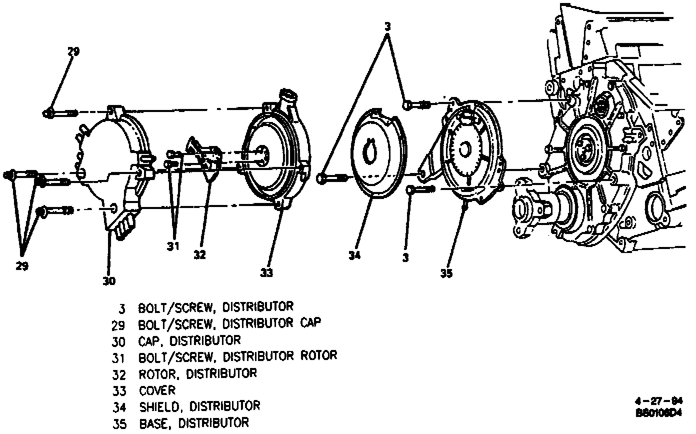 ^ Distributor cap bolts / screws (29) to 2.8 Nm (25 lb in.).