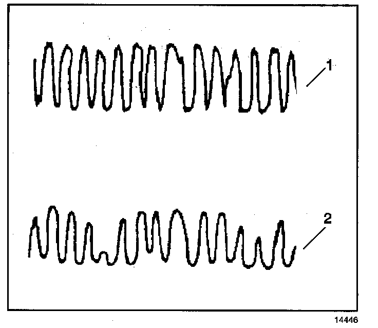 A good catalyst (e.g. 95 % hydrocarbon conversion efficiency) shows a relatively flat output voltage on the post-catalyst Heated Oxygen Sensor (HO2S). A degraded catalyst (65 % hydrocarbon conversion) shows a greatly increased activity in output voltage from the post catalyst HO2S.