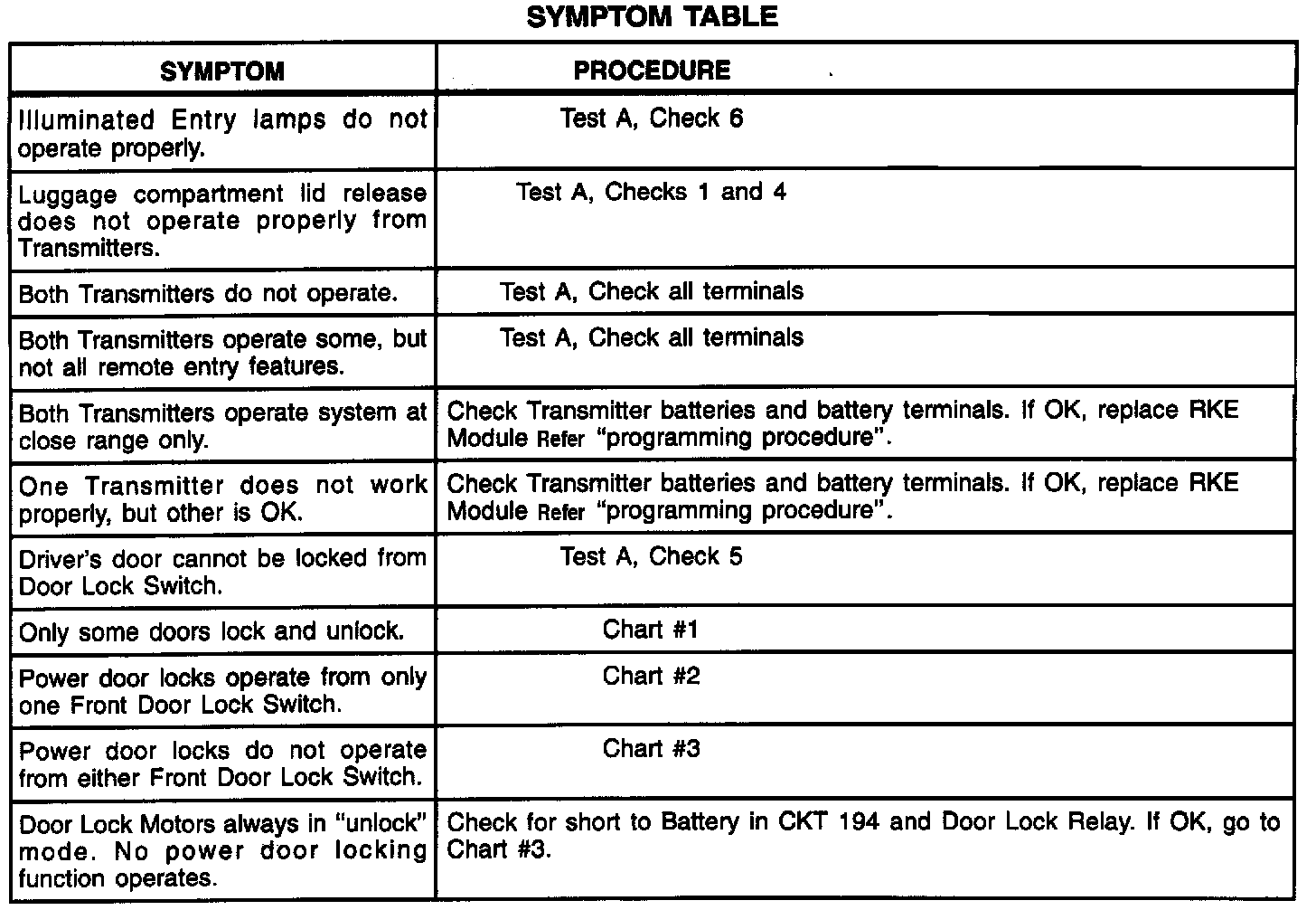 Symptom Table:
