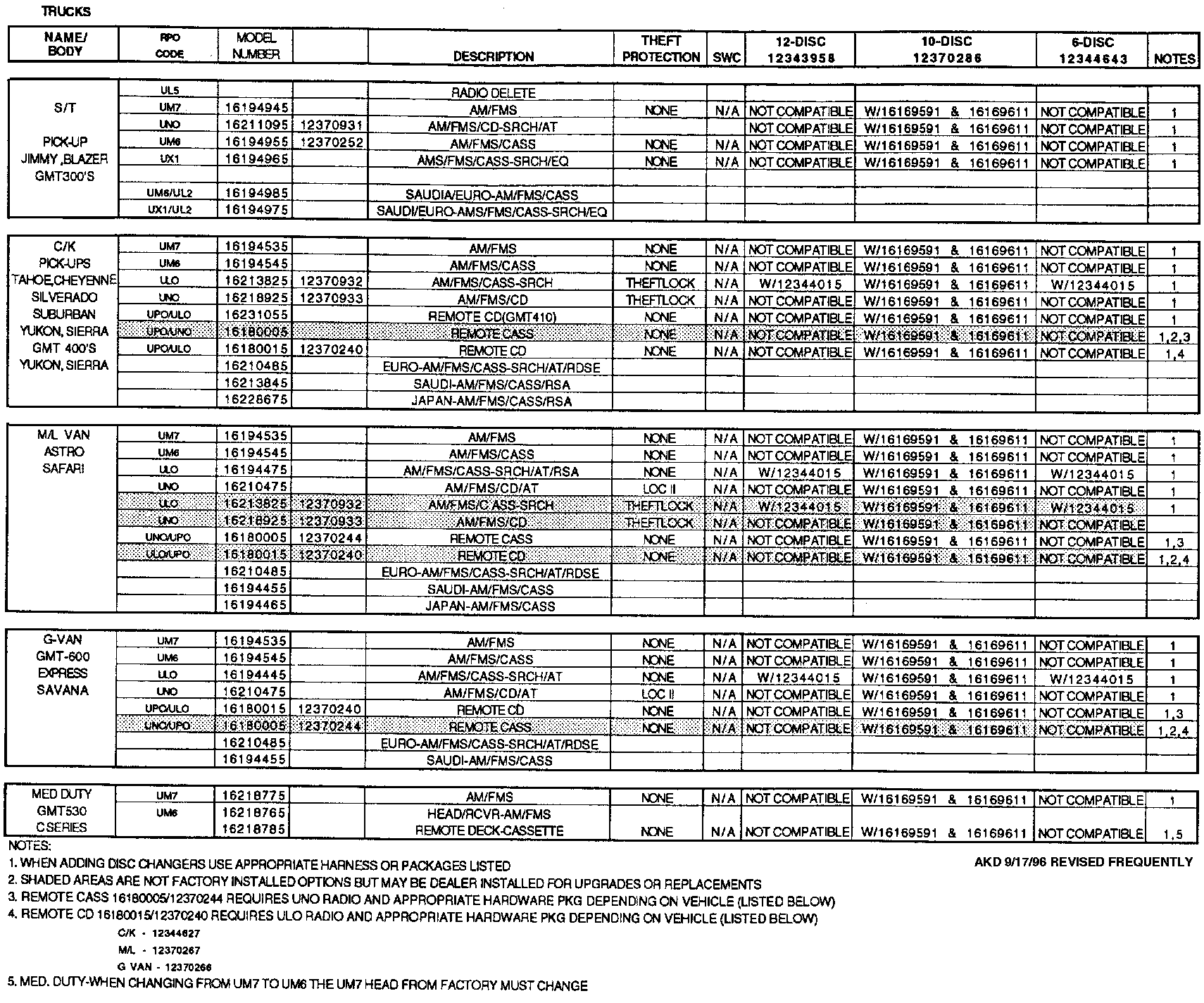 In the event you know the vehicle will need a radio before the customer brings the vehicle in, every effort should be made to have a pre-exchanged radio available. A radio identification list is attached to help you select the correct radio.