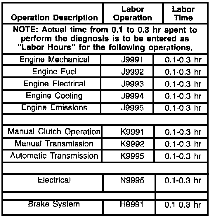 ^ Technicians should only use "Customer Concern Not Duplicated/Verified" labor operation numbers if they are properly trained in the specific area being diagnosed.