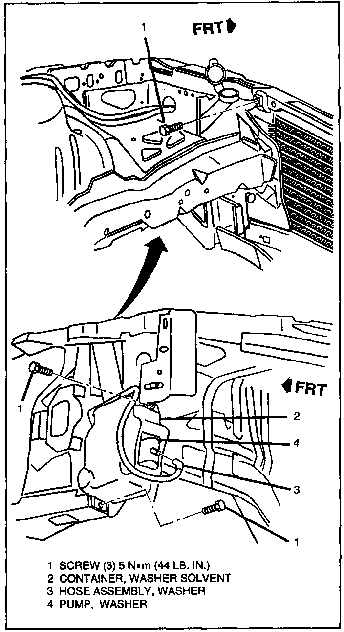 4. Electrical connector and washer hose assembly (3) from washer pump (4).