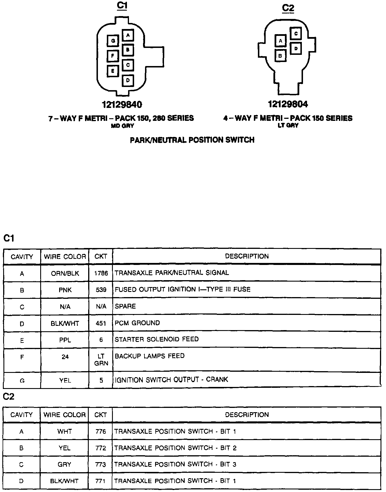 Park/Neutral Position Switch: C1 And C2: