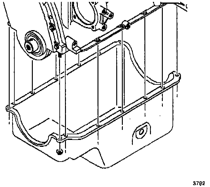 1. Remove the oil pan bolts.
