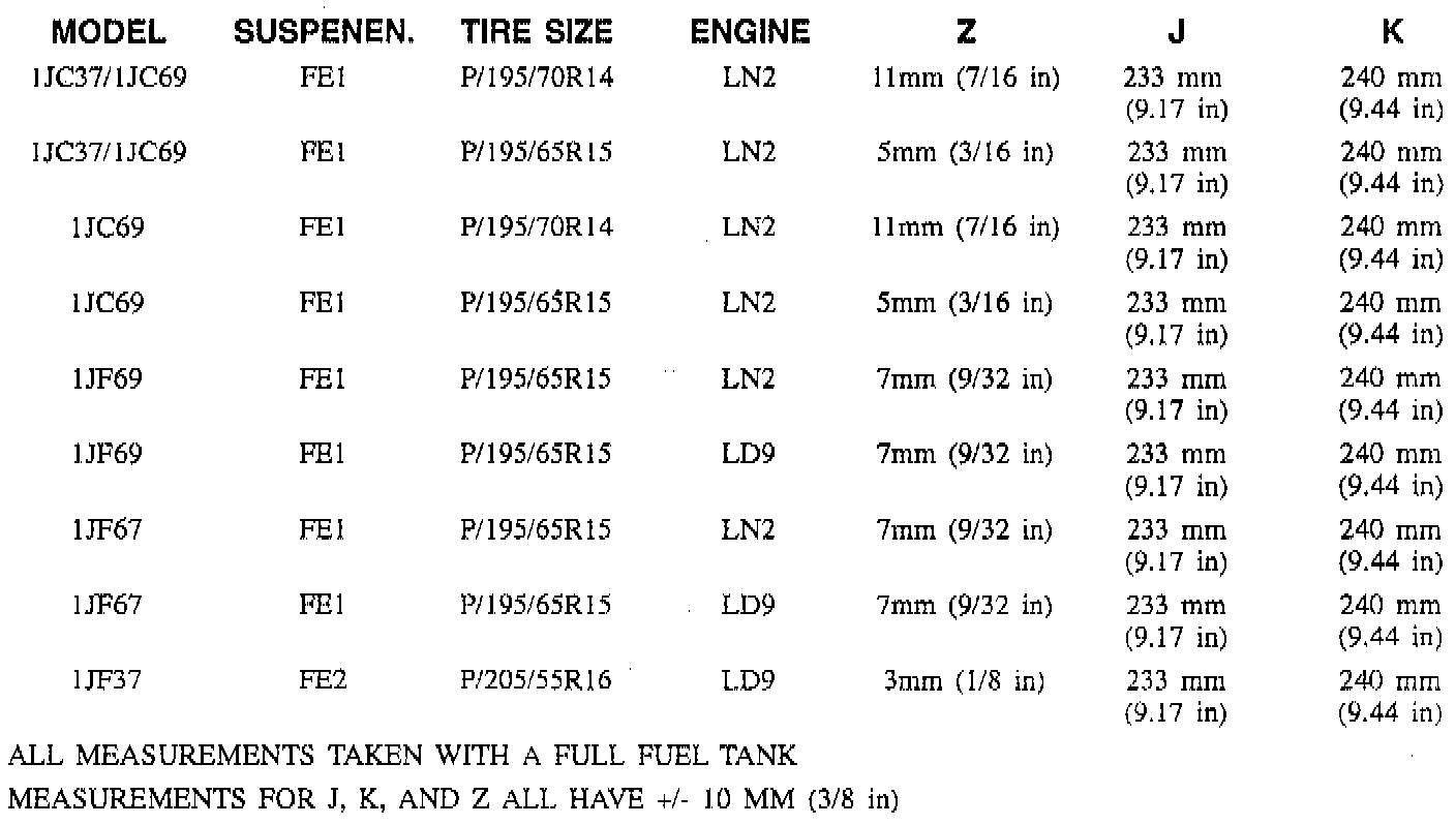 Vehicle Ride (Trim) Height Specifications