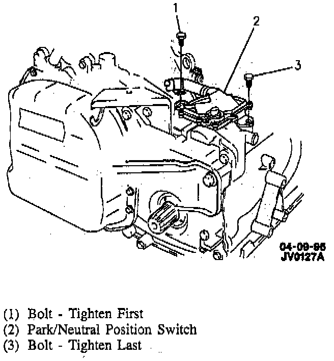 - After switch installation verify that engine will only start in "Park" or "Neutral." If engine will start in any other position, readjust switch using "Replacement - Using Old Switch" procedure.
