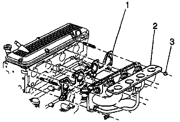 15. Remove the lower manifold attaching nuts (3).